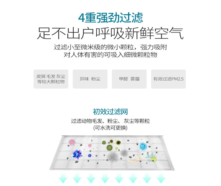4、五檔風(fēng)速,開蓋斷電,四重過濾,H13級(jí)過濾,過濾效率達(dá)99%以上
